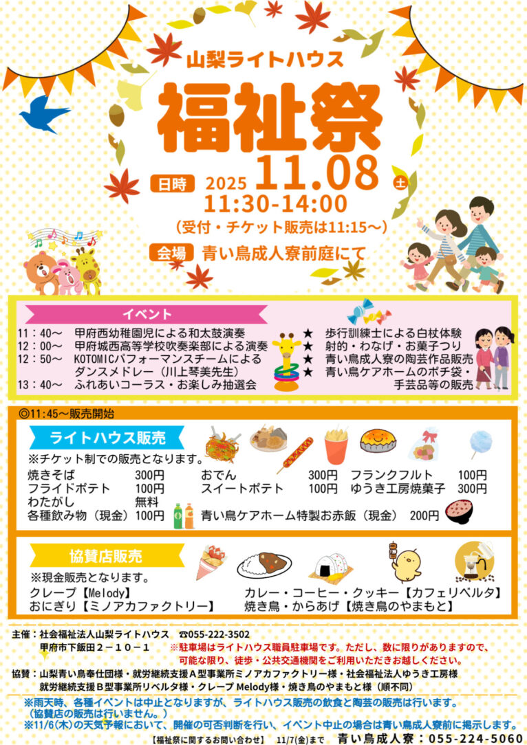 敷地内の飲食については、福祉祭での飲食販売で購入した物のみとさせていただきます。